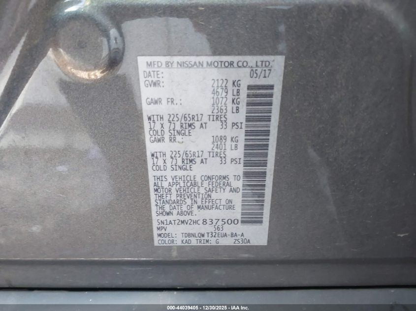 VIN: 5N1AT2MV2HC837500 • Lot: 44039405 • IAAI
