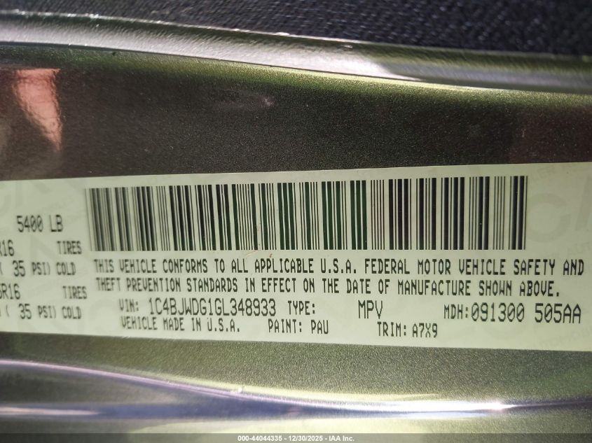 VIN: 1C4BJWDG1GL348933 • Lot: 44044335 • IAAI